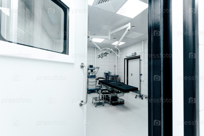 Интерьер хирургической операционной в больнице, светлая комната с медицинским оборудованием