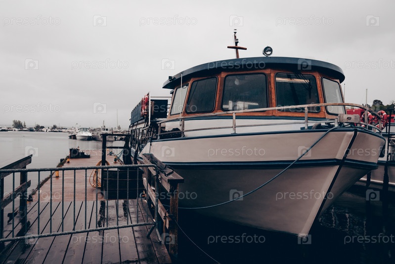 Стоянка яхт в морском порту, лодки в воде озера, пейзаж пристани для яхт в пасмурный день