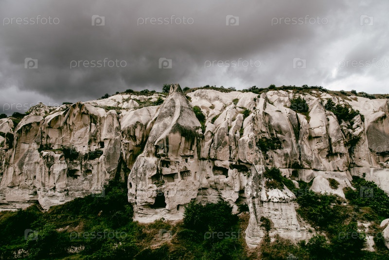 Пейзаж заснеженных гор, горный хребет в дымке летом
