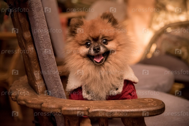 Милый мопс сидит на диване в ресторане и смотрит в камеру, питомец отдыхает
