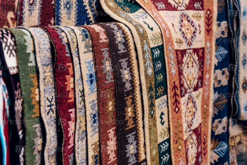 На Восточном рынке продаются местные этнические ковры и красочные покрывала
