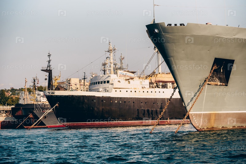 Стоянка военных кораблей в морском порту, лодки в воде озера, пейзаж пристани для яхт в пасмурный день