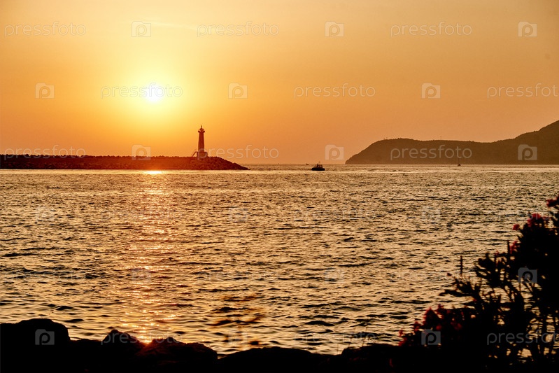 Морской пейзаж, свет, солнце, пруд, море снаружи, океан, природа, закат на маяке