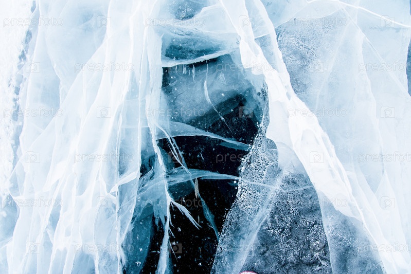 Текстура глубокого синего льда, замерзшая зимой вода в озере, ледяные обои, белый снег