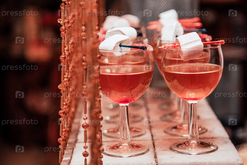 Алкогольный коктейль в стеклянном бокале, ночная жизнь в клубном баре, бармен смешал жидкость