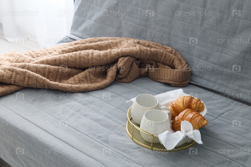 Уютная и гостеприимная обстановка для завтрака с восхитительными круассанами и теплым чаем