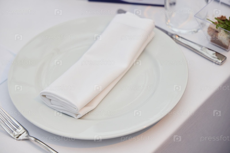 Элегантная сервировка стола с белой салфеткой и красиво оформленной тарелкой