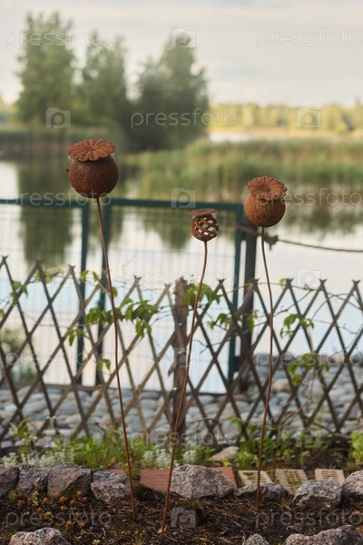 Откройте для себя деревенский сад на берегу озера, где на фоне красоты природы представлены уникальные цветочные скульптуры