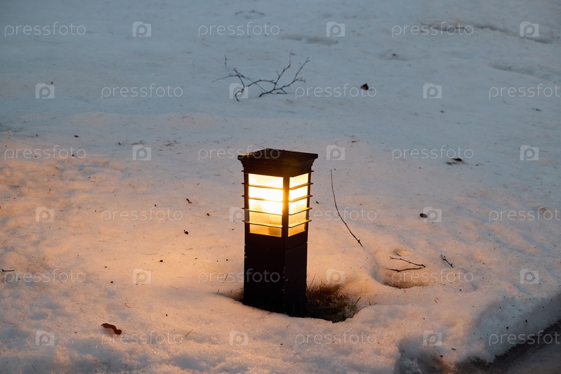 Красиво освещенный фонарь, элегантно расположенный на фоне безмятежного и снежного пейзажа