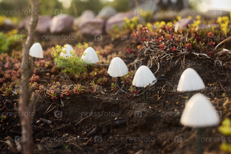 Коллекция элегантных белых грибов, прекрасно расположенных на природе на открытом воздухе