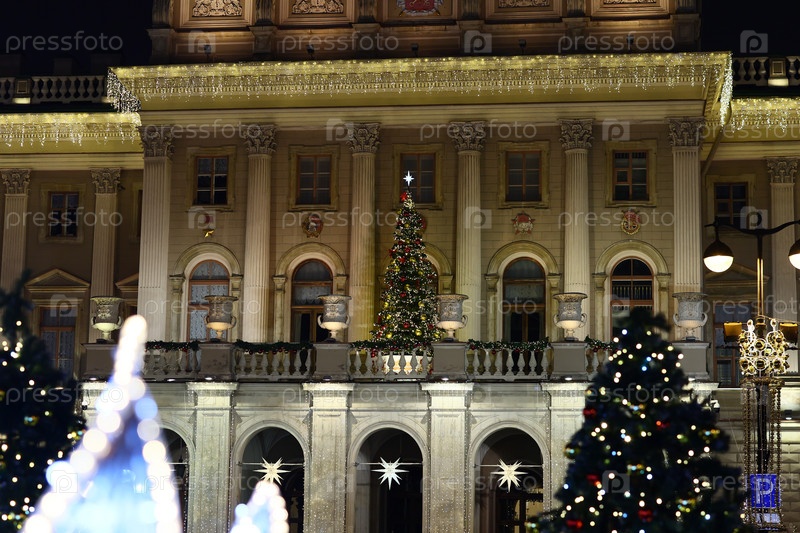Наслаждайтесь радостным праздничным вечером в потрясающем историческом здании, украшенном красивыми рождественскими елками