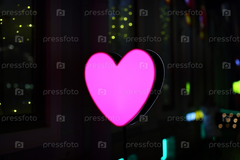 Яркая розовая неоновая вывеска в форме сердца, расположенная в оживленном городском окружении, которая очаровывает всех