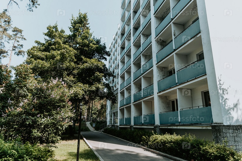 Многоэтажный жилой дом на окраине города, дом на фоне солнечного летнего дня