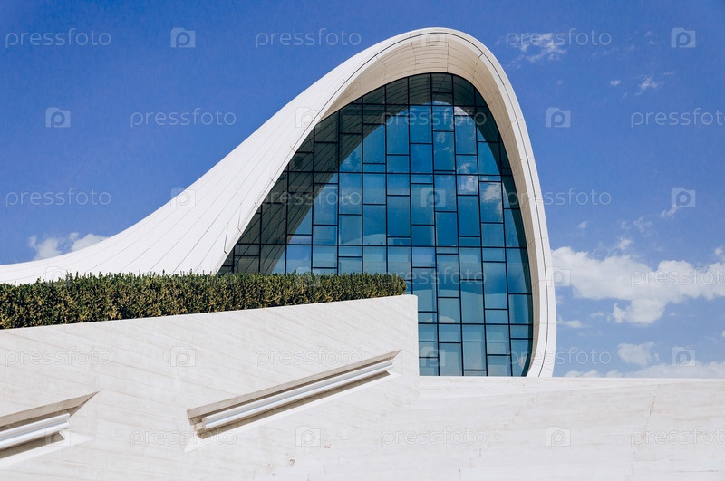 Красивый необычный музейный комплекс, фасад здания современной архитектуры