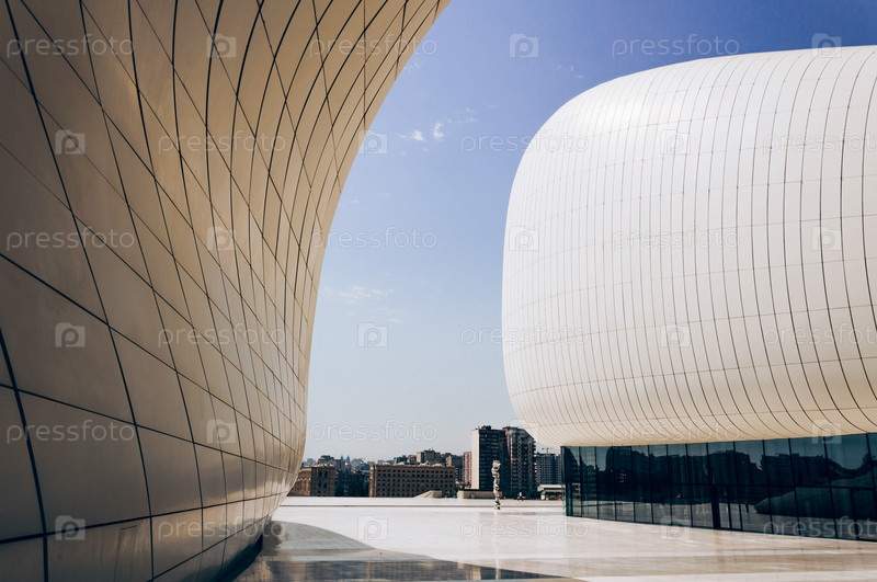 Красивый необычный музейный комплекс, фасад здания современной архитектуры