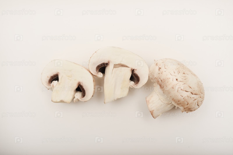 Свежие шампиньоны на белой тарелке. Грибы на белом фоне