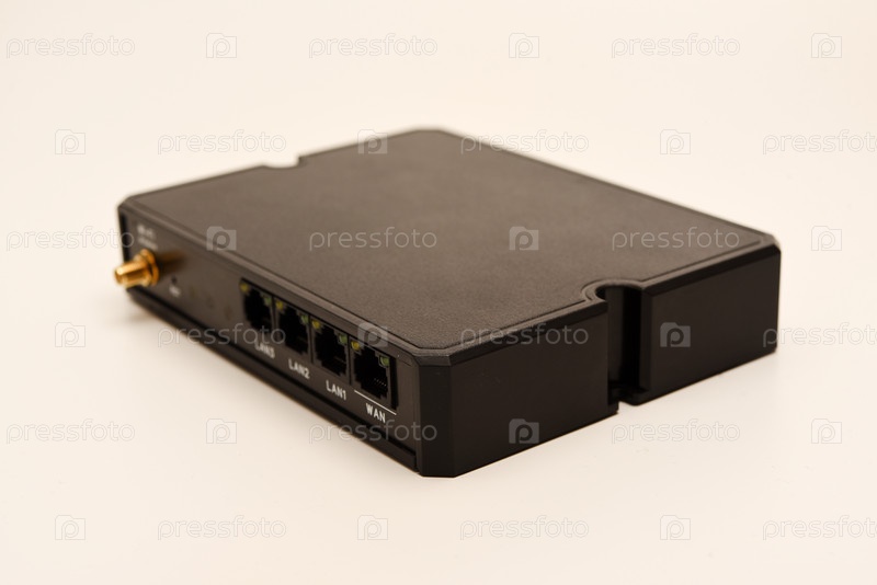 Модем GSM. Интернет-станция с SIM-картой. Черный маршрутизатор на белом фоне