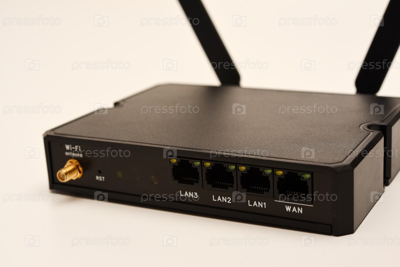 Модем GSM. Интернет-станция с SIM-картой. Черный маршрутизатор на белом фоне
