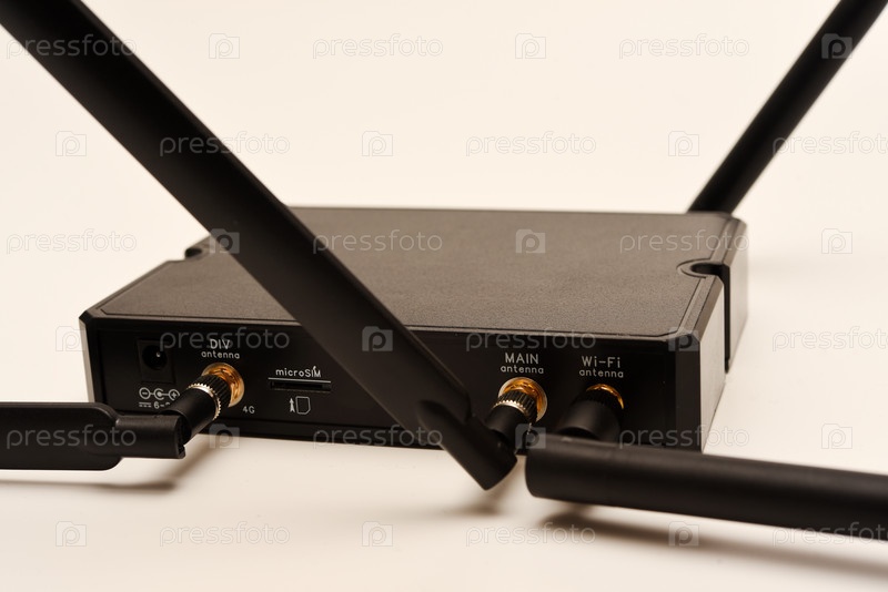 Модем GSM. Интернет-станция с SIM-картой. Черный маршрутизатор на белом фоне