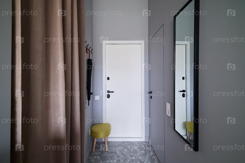 Современный минималистский коридор со стильными элементами декора и элегантным дизайном зеркала