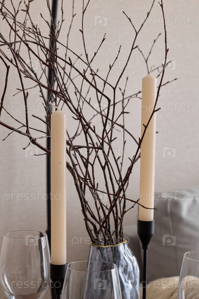 Откройте для себя очарование элегантного декора стола с прекрасно расставленными свечами и натуральными ветвями