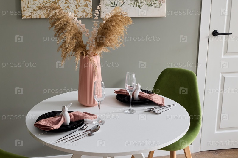 Элегантная обстановка столовой с изысканным центральным элементом из пампасной травы для проведения очаровательных мероприятий