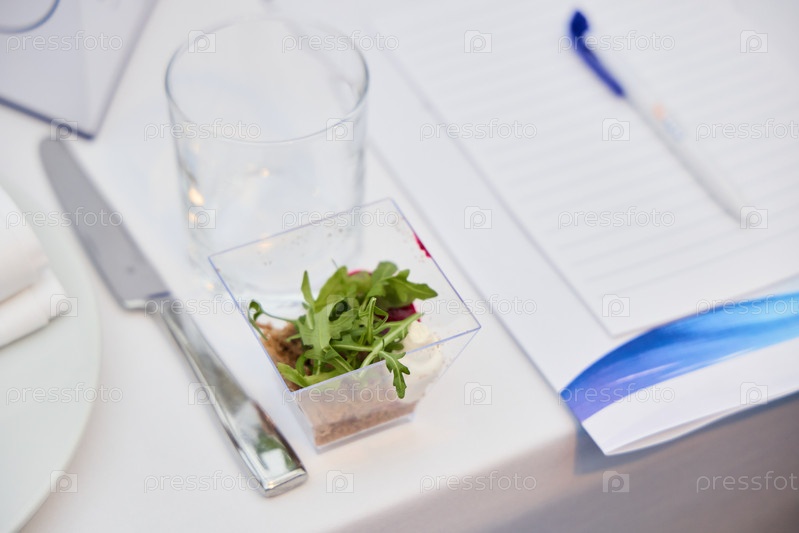 Элегантная сервировка стола со свежей зеленью и блокнотом для заметок и идей