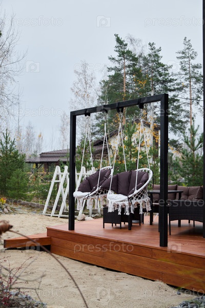 Откройте для себя стильные уличные качели в спокойной обстановке сада, идеально подходящие для отдыха