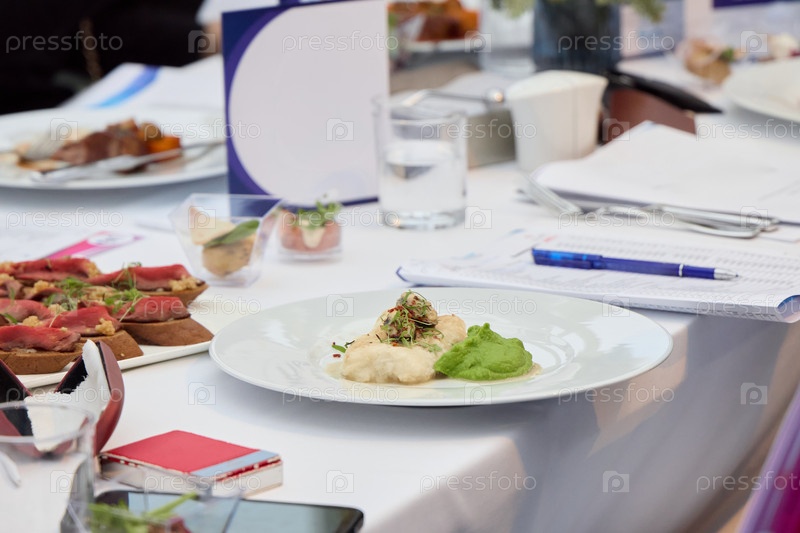 Изысканное блюдо, изысканно представленное на изысканном и элегантном обеденном мероприятии