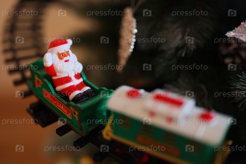 Красиво изготовленное праздничное украшение в виде поезда Санты, украшающее рождественскую елку, приносит радость