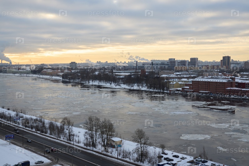 Красивый зимний пейзаж вдоль реки в сумерках и на закате, демонстрирующий мастерство природы