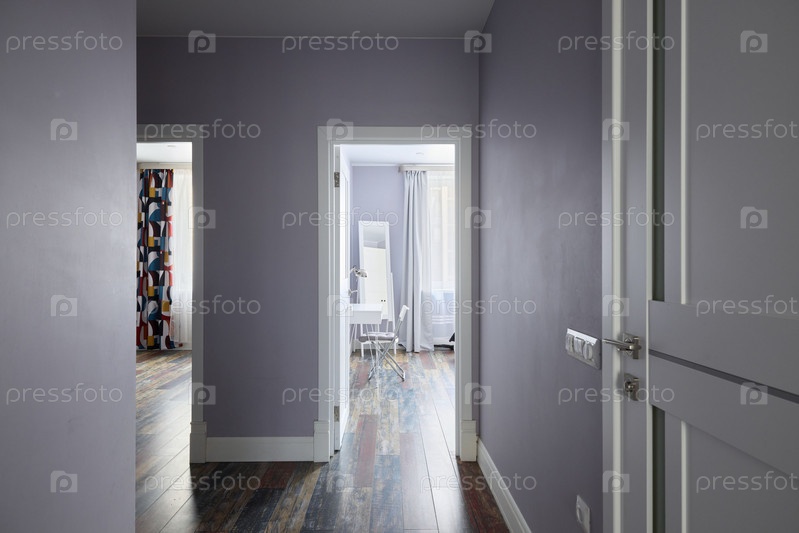 Современный коридор со стильными элементами декора и яркими, светлыми тонами, которые расширяют пространство