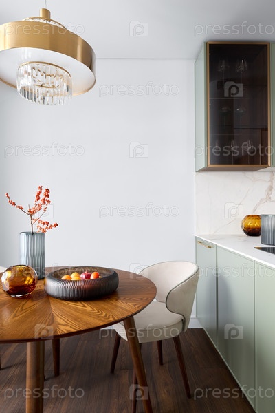 Современная обеденная зона с элегантным декором и красивыми природными элементами