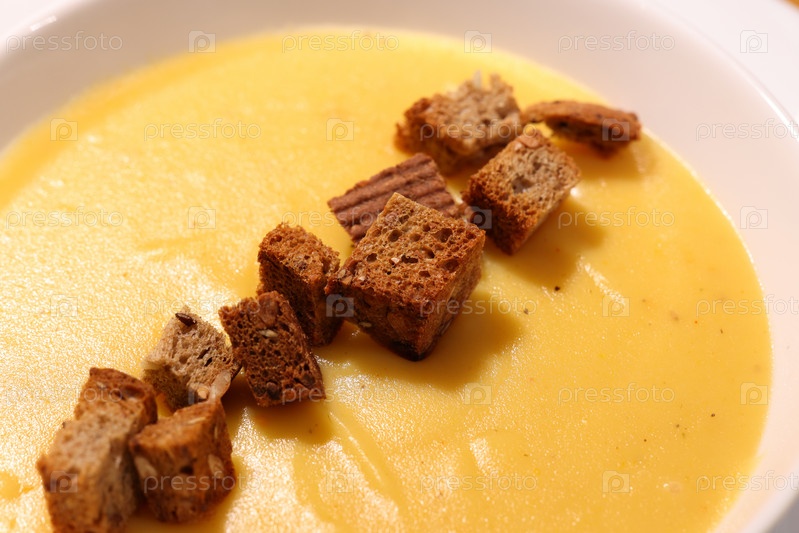Наслаждайтесь кремовым наваристым тыквенным супом с хрустящими гренками, который идеально подходит для встреч и праздников