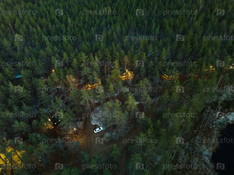 Наслаждайтесь умиротворяющим видом с воздуха, запечатлевшим красоту пышного соснового леса ночью