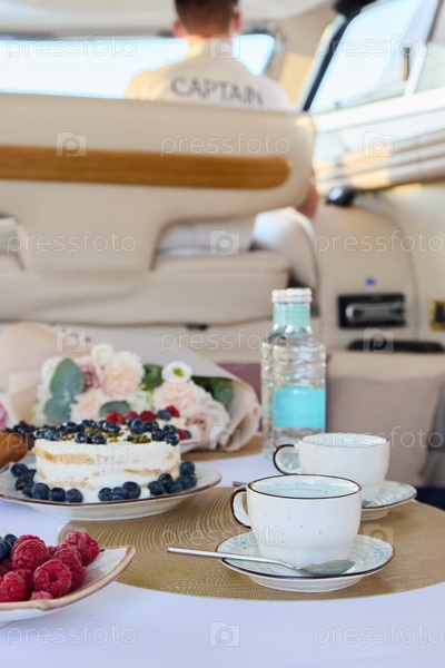 Элегантный завтрак на яхте с вкуснейшими ягодами и восхитительным тортом под солнцем
