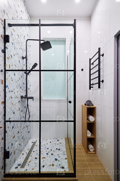 Откройте для себя современный дизайн душевой кабины со стеклянной кабиной и стильным каменным полом для релаксации