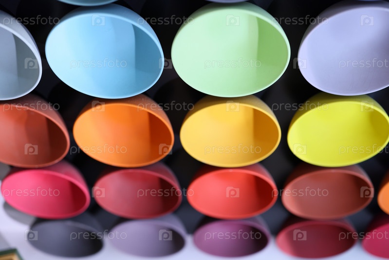 Разнообразная коллекция красочных круглых сосудов, представленных и богато расставленных