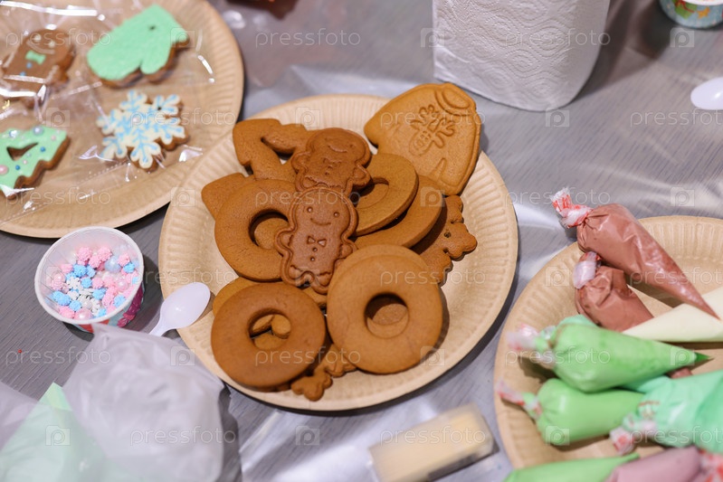 Восхитительные праздничные имбирные пряники вместе с набором декоративных принадлежностей