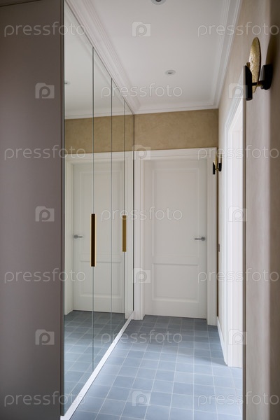 Элегантный и современный коридор с отражающими поверхностями и стильными деталями