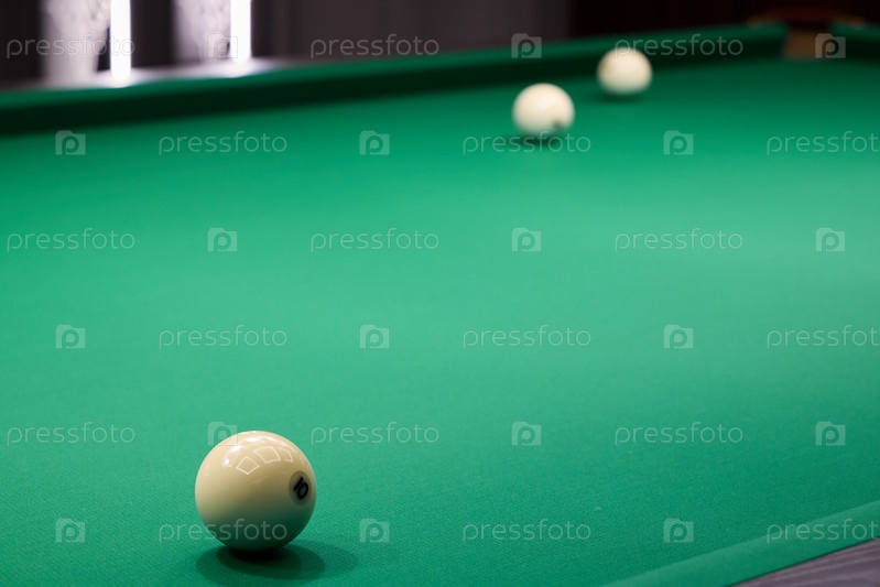 Сфокусированный снимок разноцветных бильярдных шаров, аккуратно расставленных на зеленом фетровом столе