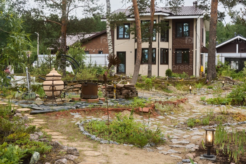 Прекрасно спроектированный современный ландшафтный сад с потрясающим современным домом