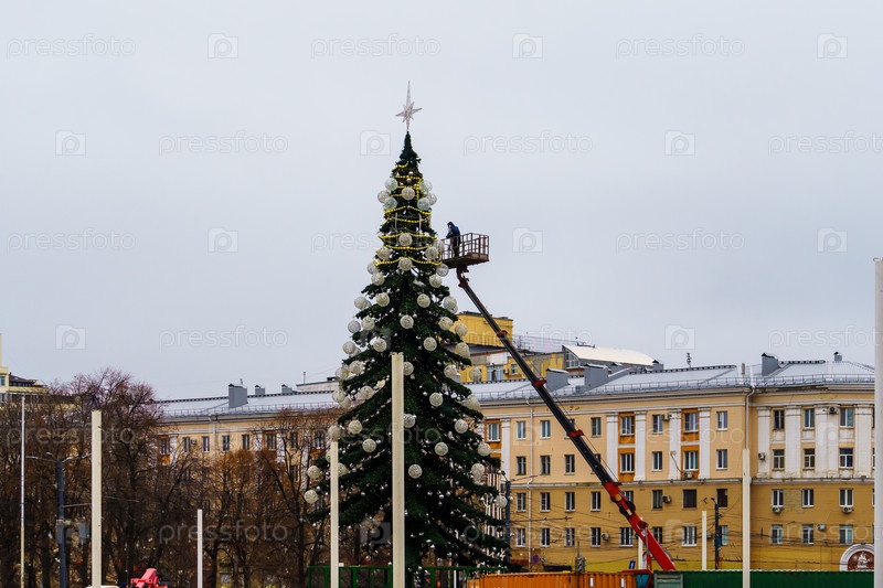 Украшение новогодней елки на площади Ленина. Воронеж