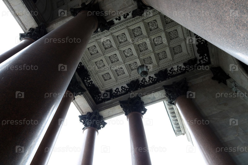 Ажурная лепнина на потолке портика православной церкви Исаакиевского собора (Собора Святого Исаакия Далматского) в Санкт-Петербурге