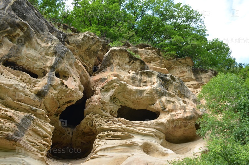 Сырные пещеры (Сырные скалы) в скале пористого мягкого песчаника - достопримечательность в Карачаево-Черкесской Республике