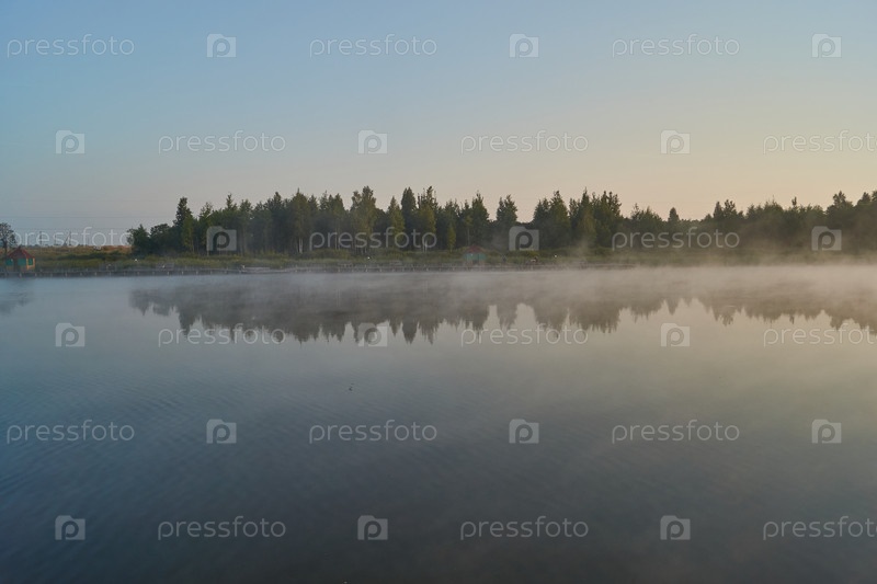 Восход солнца над озером. Рыбалка на озере. Отражение в воде