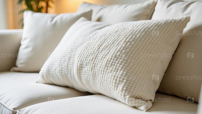 Подушка из фактурной ткани букле на фоне других подушек