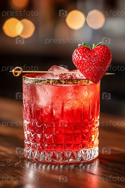 Коктейль на День святого Валентина с кусочком клубники в форме сердца