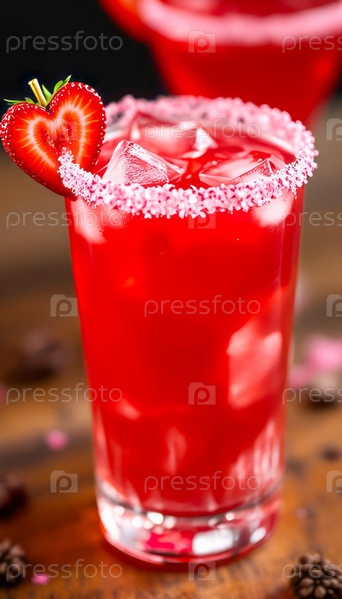 Коктейль на День святого Валентина с кусочком клубники в форме сердца