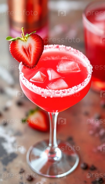 Коктейль на День святого Валентина с кусочком клубники в форме сердца